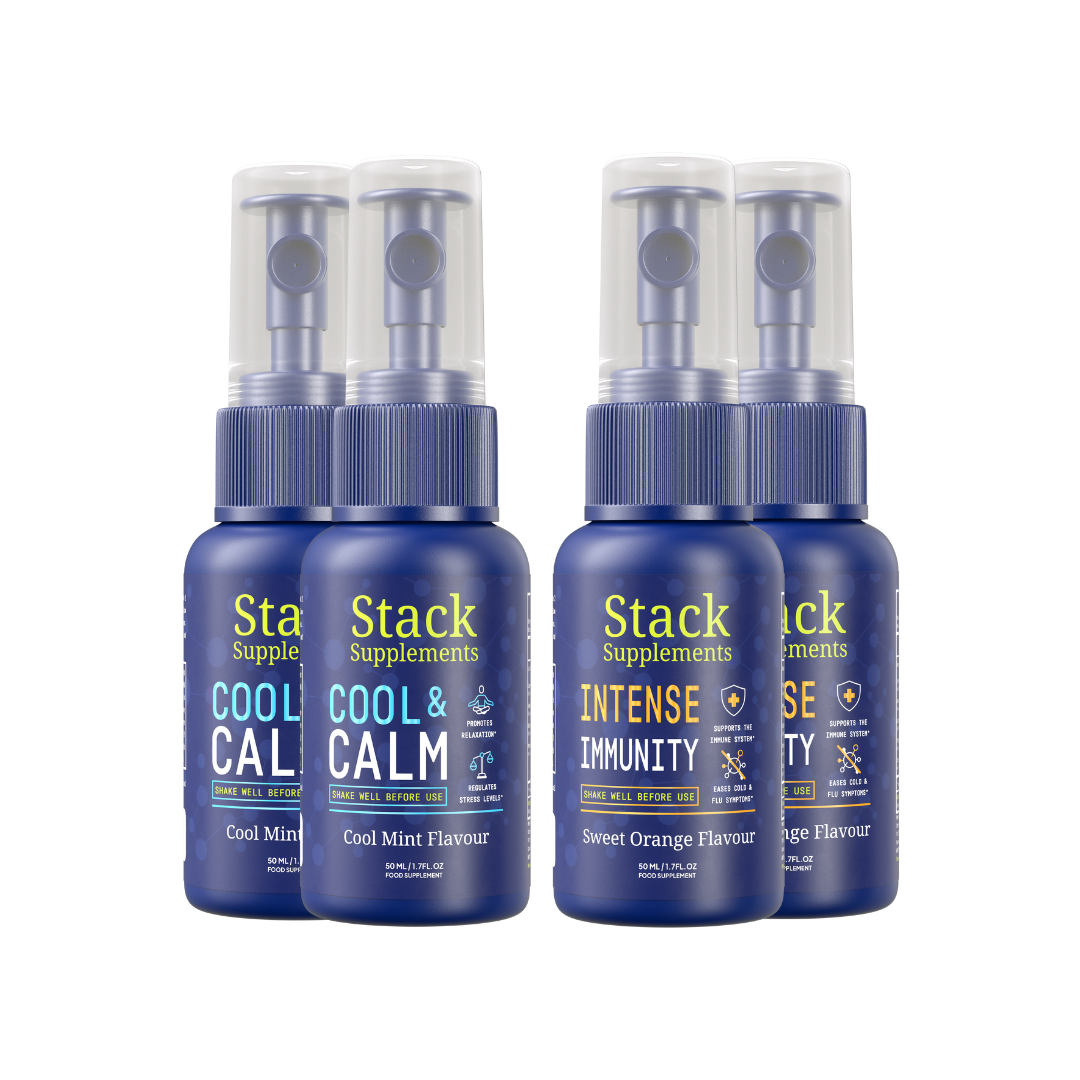 Formulated to calm the mind and body which prevents stress from weakening the immune system - and boosting the immune system to prevent you from getting stressed. This stack is carefully designed to promote overall wellbeing in a multifaceted way unlike anything else. The ingredients in both of the sprays synergistically work together to support mental and physical resilience for those stressful days where you feel the sniffles coming.